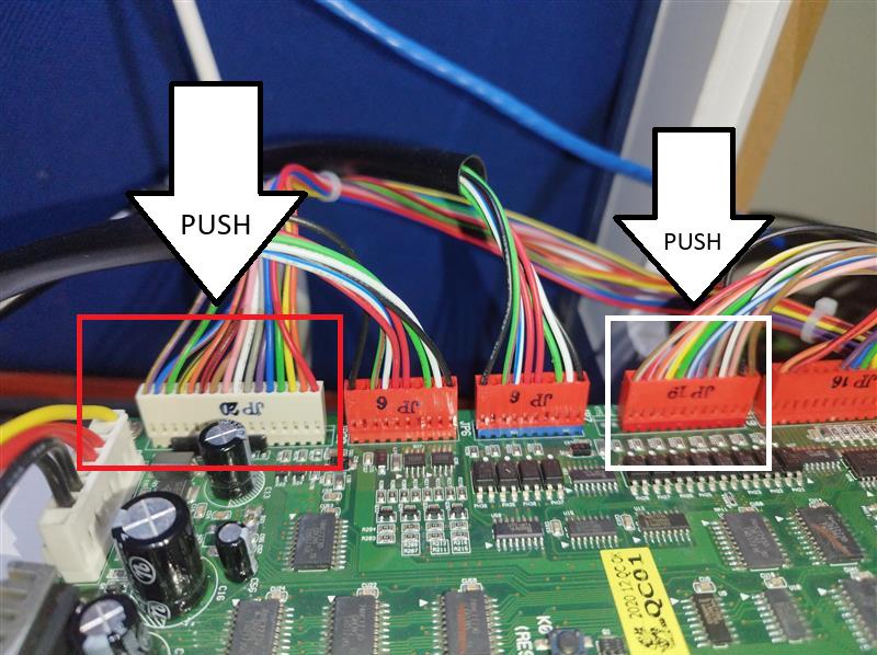 Plug JP19 and JP20 back into the main board and check the dipswitches are correct before you turn the machine back on.