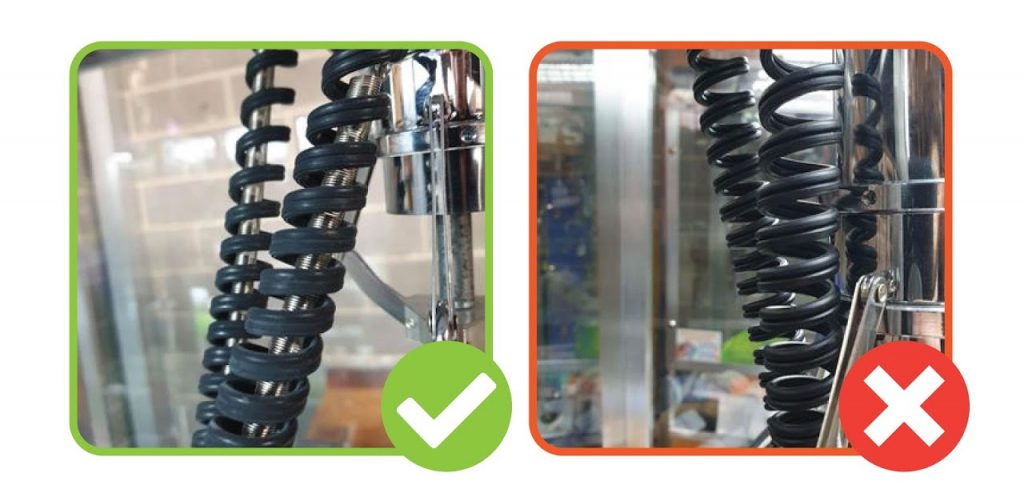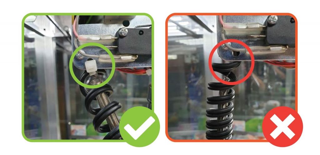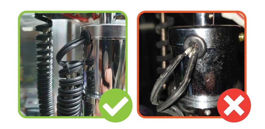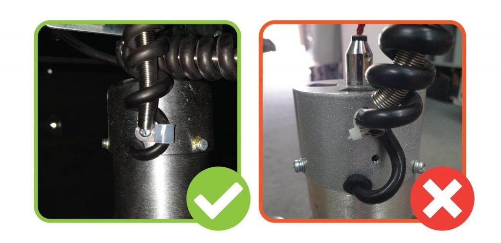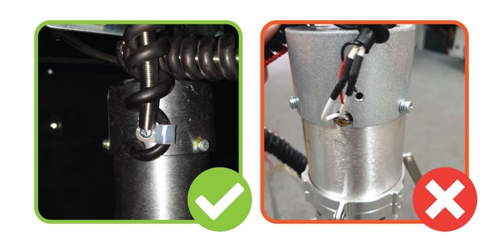 2. CHECK THE WIRING HAS A SPRING IN THE MIDDLE AND IS CABLE TIED ON:
