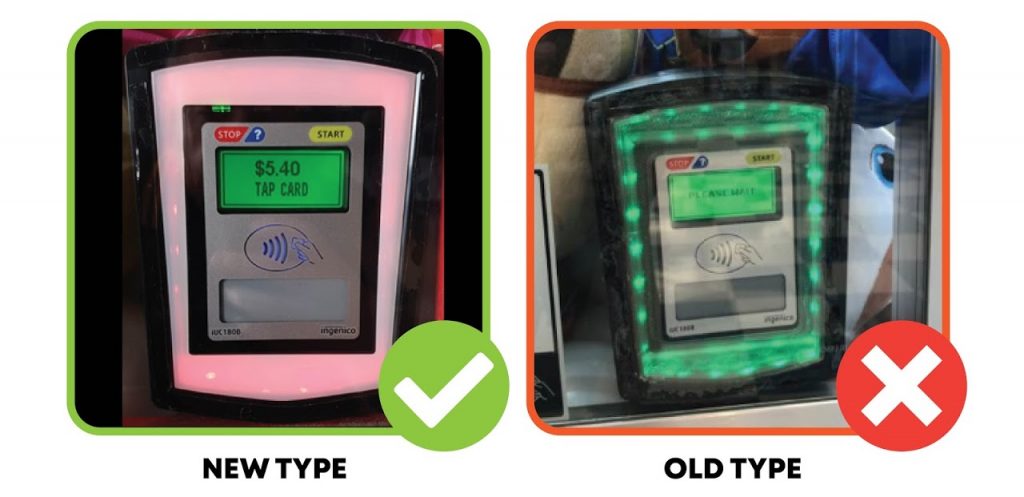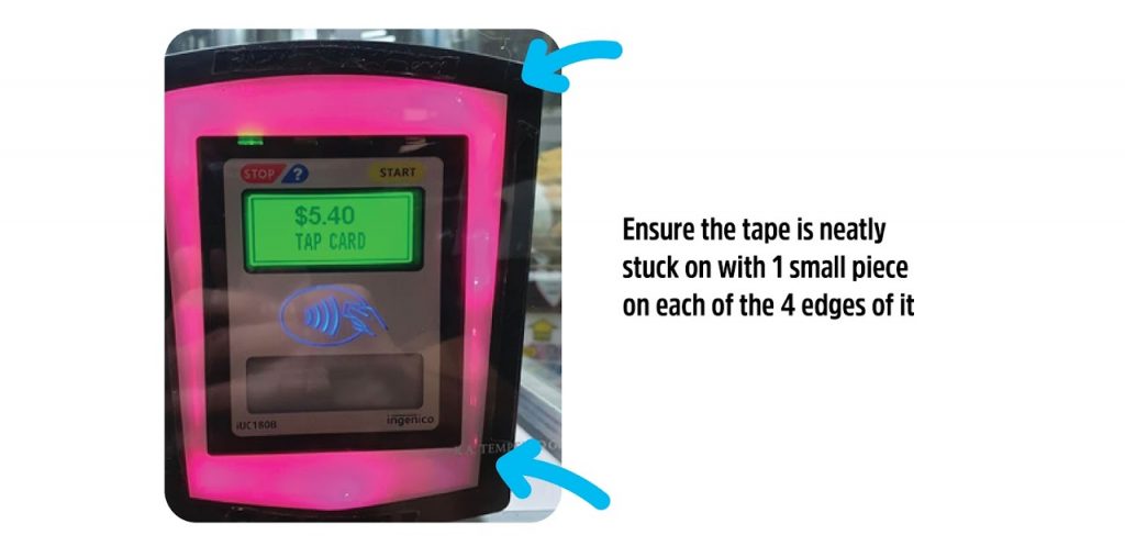 • Ensure the sticker is attached including the Surcharge message and the Tap Here arrow